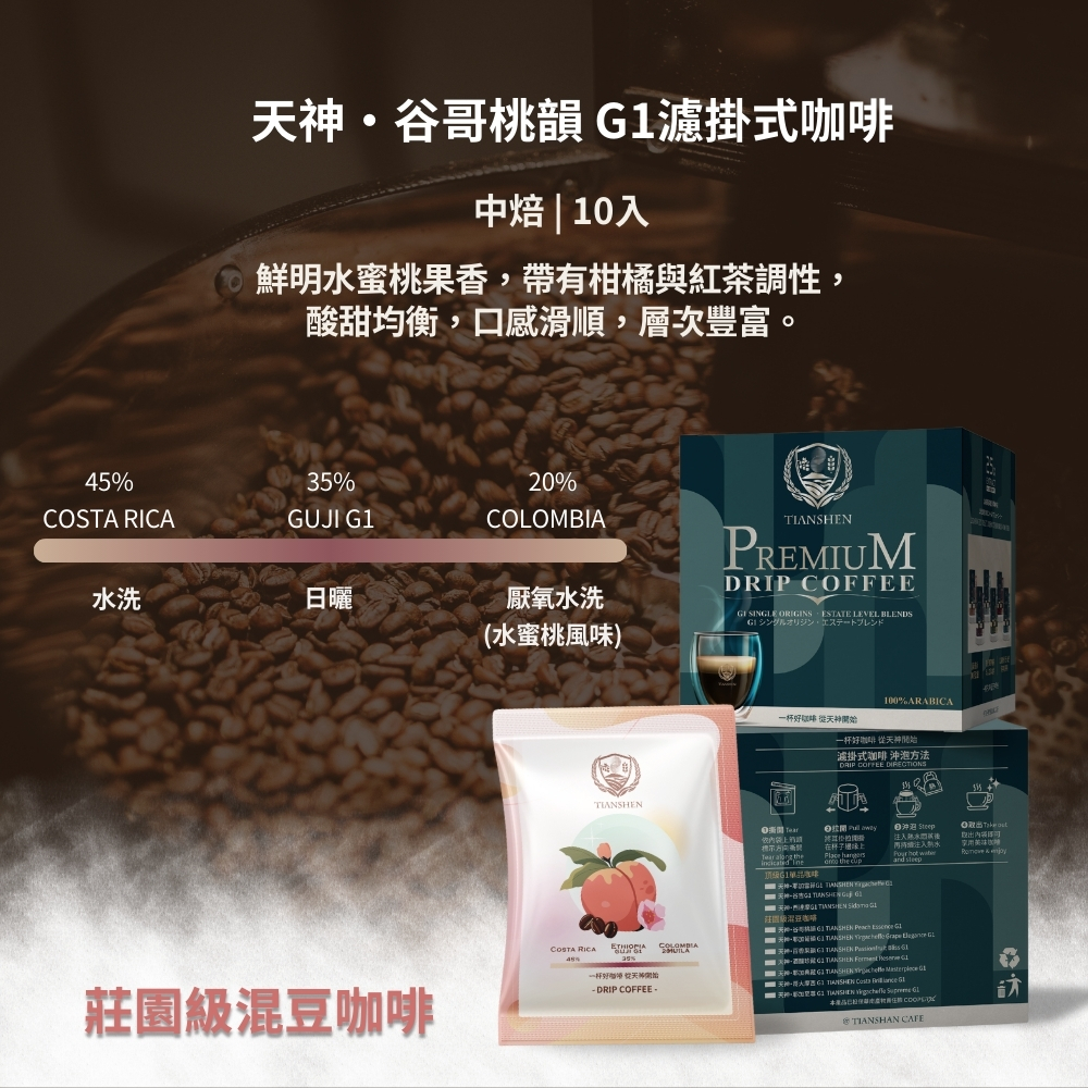 天神・谷哥桃韻 G1濾掛式咖啡 | 中焙 (10入)