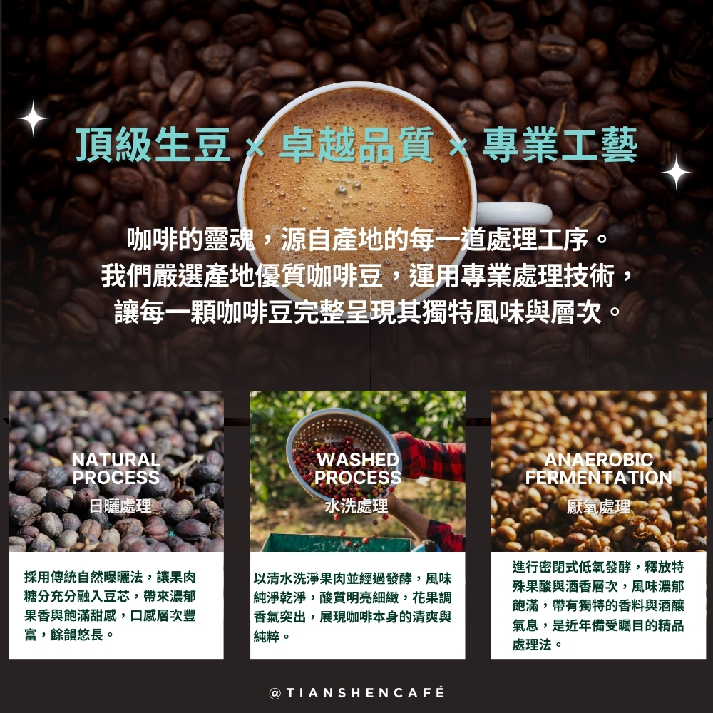 哥斯大黎加水洗45% 谷吉G1日曬35% 哥倫比亞水蜜桃厭氧水洗20%
