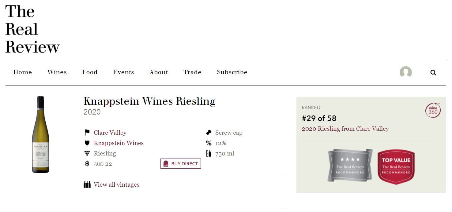 The Real Review 2020克萊爾谷區雷司令評比 四星推薦(銀旗)、最佳CP值