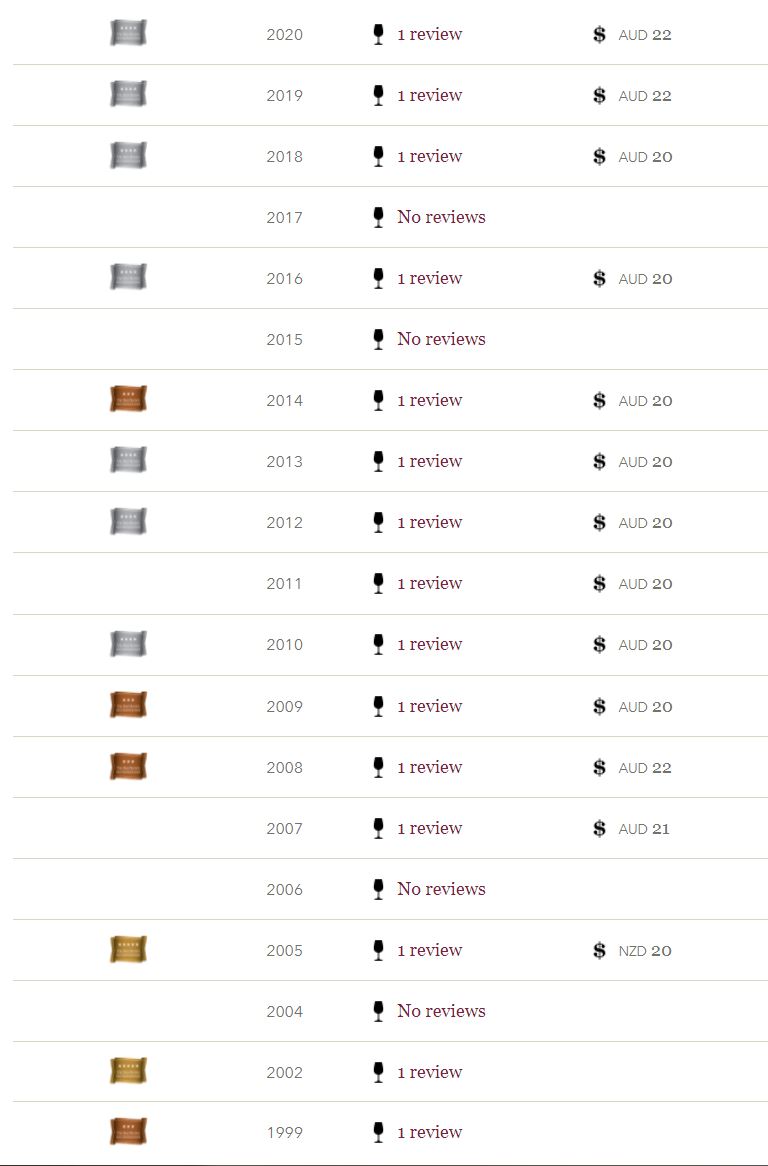 納普斯坦經典雷司令為評比常勝軍,自1999年至2020年間,共獲得2金旗、7銀旗、4銅旗,如下